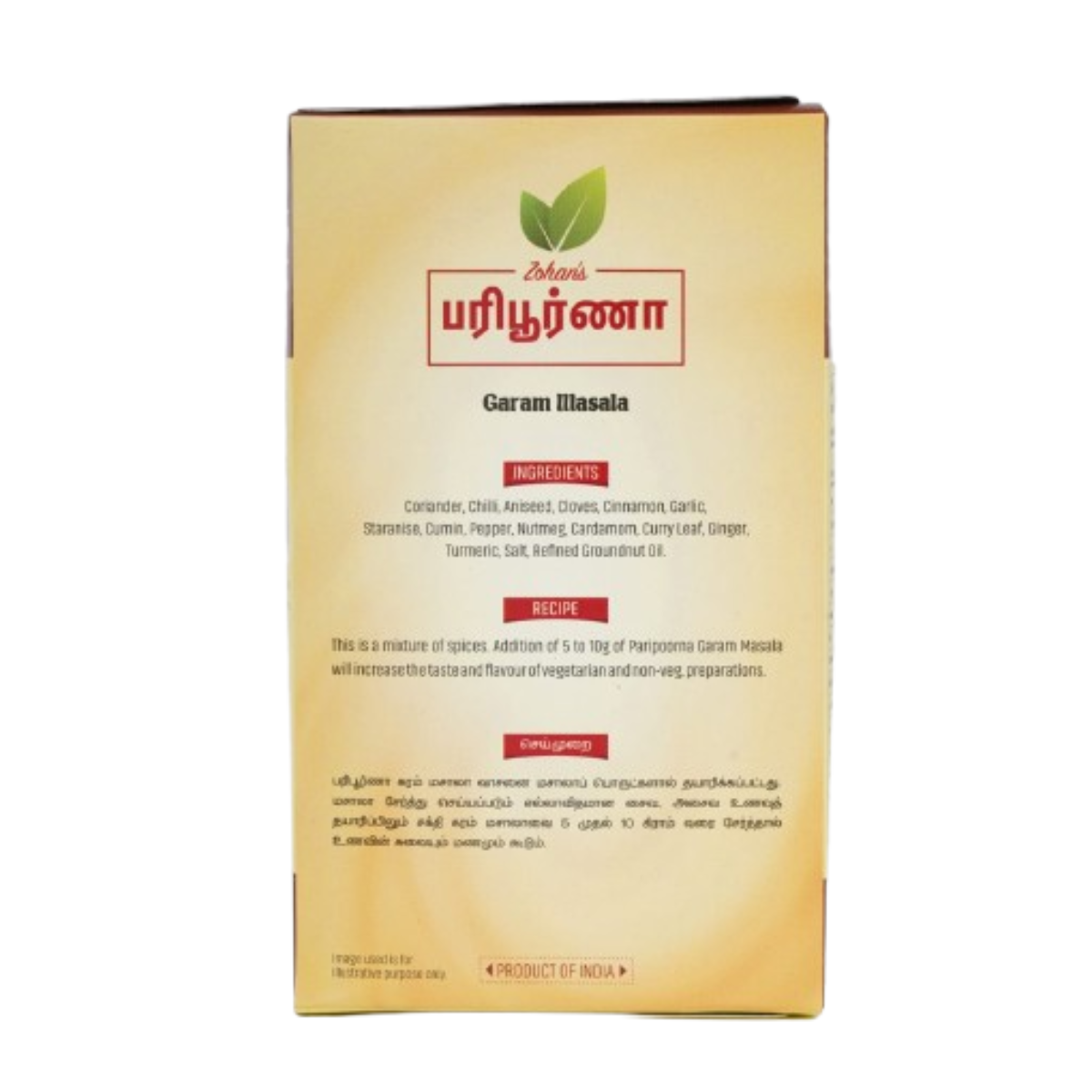 Paripoorna Garam Masala is a premium blend of aromatic spices that adds warmth, depth, and authentic South Indian flavor to your everyday dishes. Perfect for curries, gravies, and rice varieties.