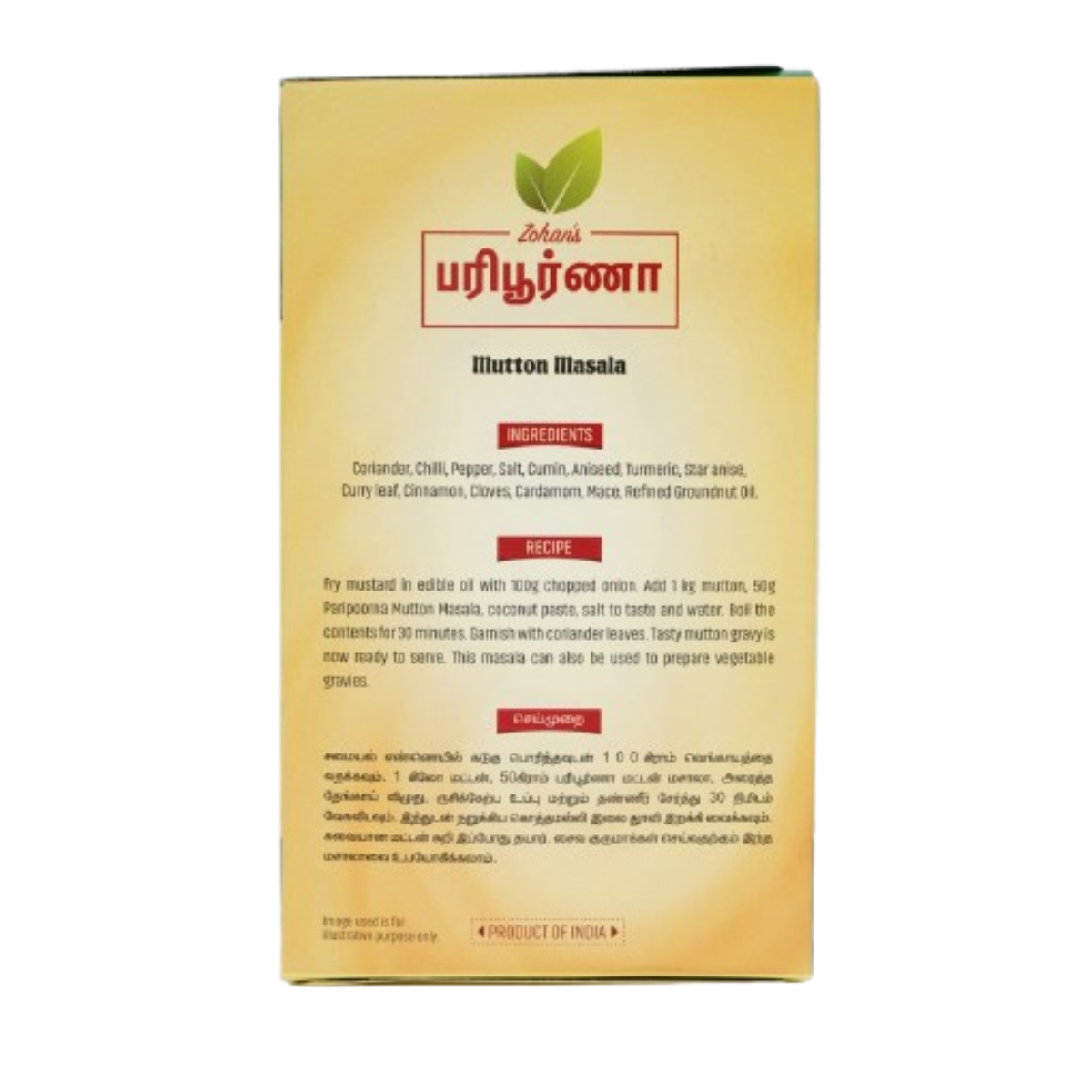 Paripoorna Mutton Masala is a premium spice blend crafted in traditional South Indian style. Perfectly balanced with rich flavors and aroma, it enhances the taste of your mutton dishes, making them irresistibly delicious.